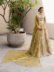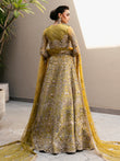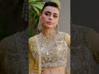 This stunning Mehndi lehenga choli in olive green features intricate mirror work, nakshi cora dubka, gotta, and silver tilla, creating a rich, textured design. White and pink crystals add a pop of color, while golden tassels hang elegantly at the end of the choli. The lehenga is adorned with golden and silver cut moti, golden sequins, and vibrant 3D flowers, bringing depth and beauty to the ensemble.